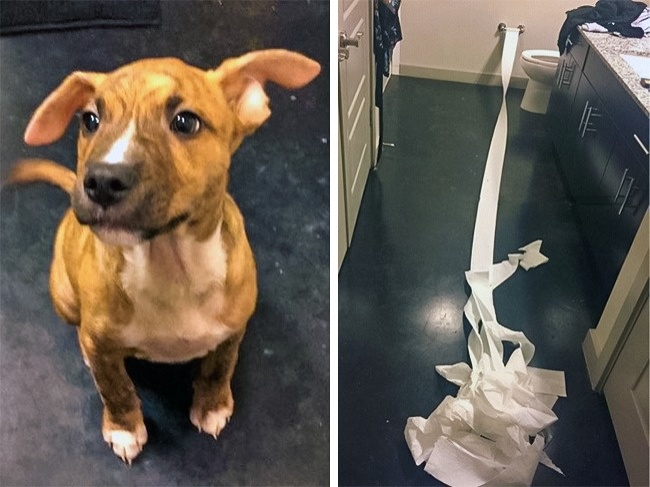 “My dog Pablo peed on the floor and tried to clean it up.”
