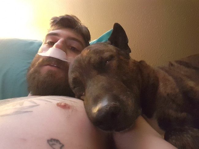“I am recovering from an operation, and he doesn’t want to leave me for a moment.”