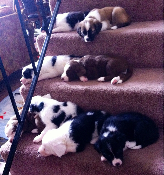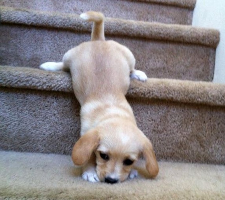 19. The first time going down the stairs on their own. Apparently the trip was exhausting.