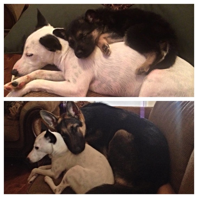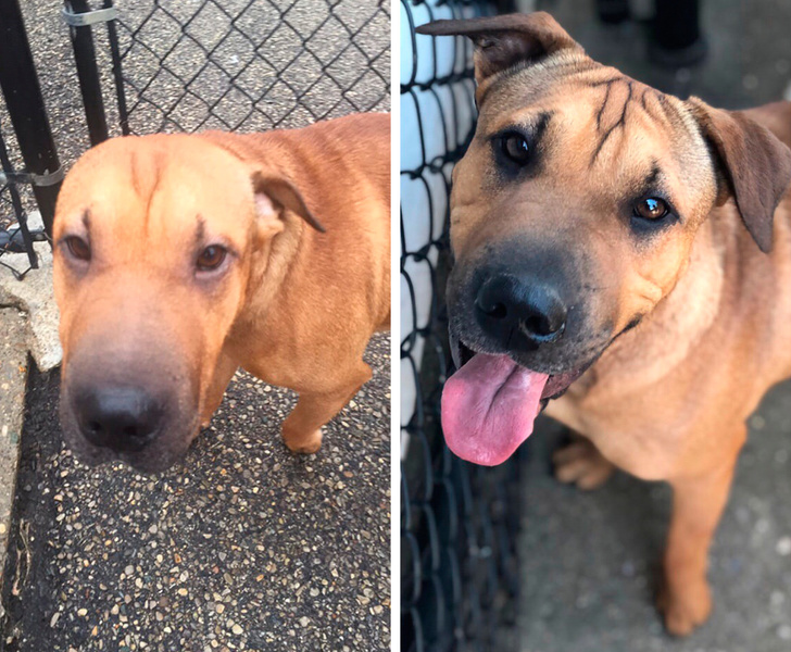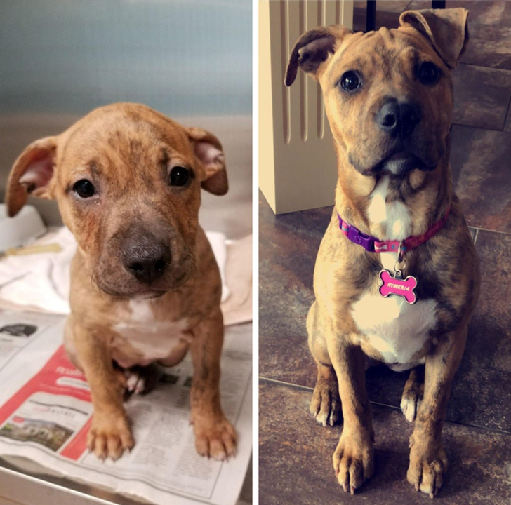 “Left picture is of me meeting the dog for the first time at work. On the right is after he had been coming with me daily for 6 months to work. He’s been the best companion a girl could ask for!”