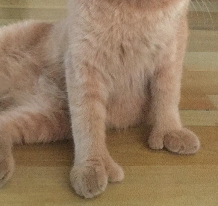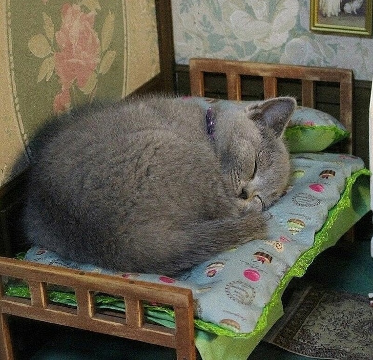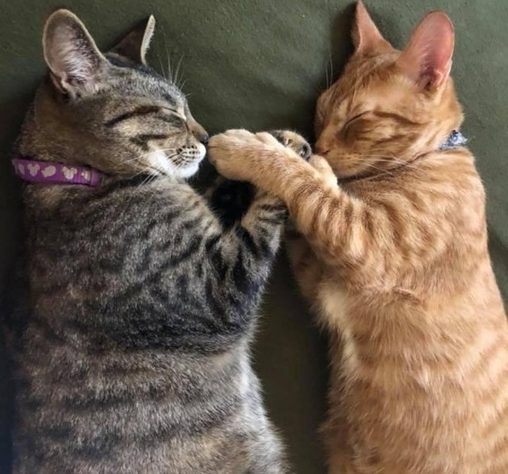 “One of our cats sleeps in the same position as my husband. They both fall asleep watching TV in the evenings.”
