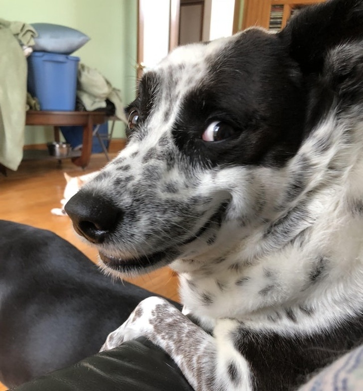 “So I walked into the great room and found my dog like this. This isn’t staged… she did this herself. Clearly she’s learned from the master… me.”
