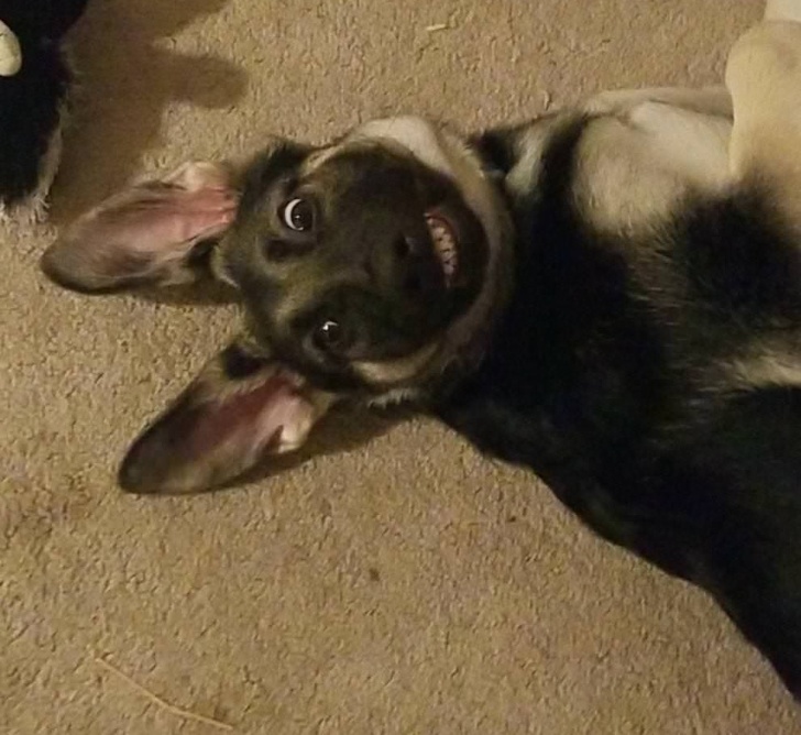 “My girlfriend texted me, ’Having a bad day at work.’ The puppy responded with this when I told her we were taking a picture for mom.”