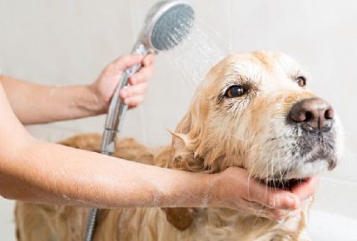 When it comes to washing your dog, you should never use shampoo intended for humans. Instead, mix some dish soap, room temperature water, and white distilled vinegar to make a bacteria-busting, soothing dog wash.