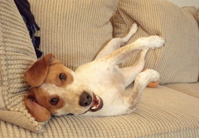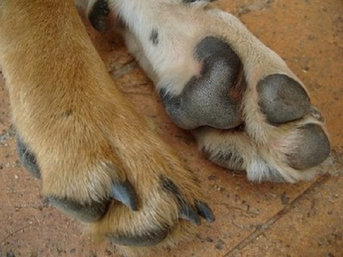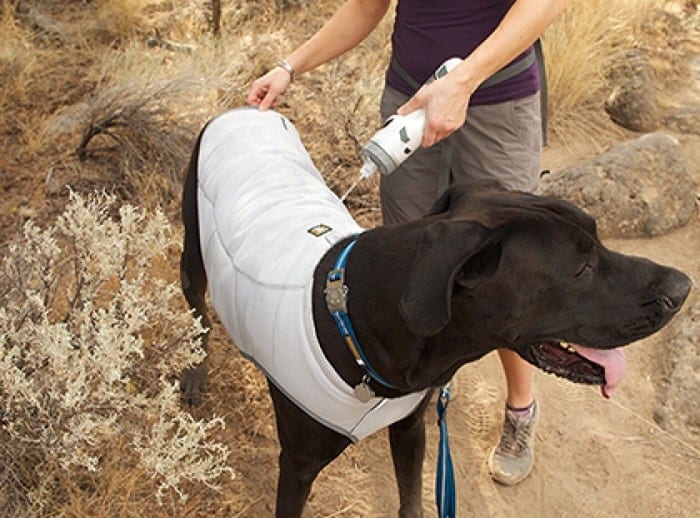 Extreme temperatures and tough terrains can wreak havoc on doggie paws. If your dog’s feet are sore or cracked, rub them with some lotion and antibiotic ointment.