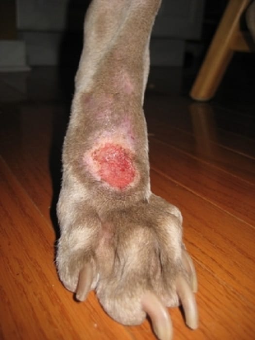 You can also ask your vet about vitamin E oil for hot spots and other skin irritations. Massage into your dog’s skin when it gets inflamed.