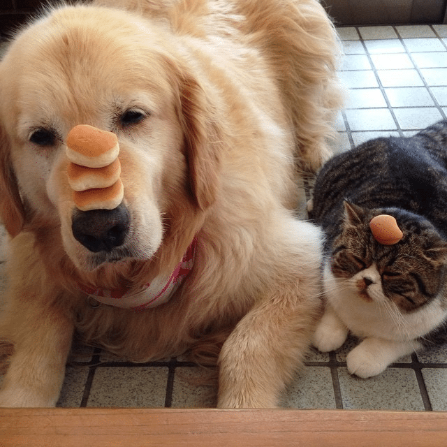 This dog is hamming it up for the camera. The cat on the other hand, not so much.