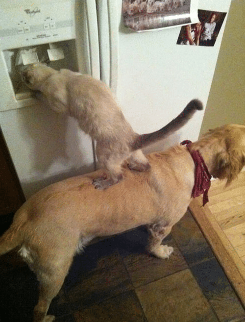 Just a picture of a cat and dog working together for their common good.