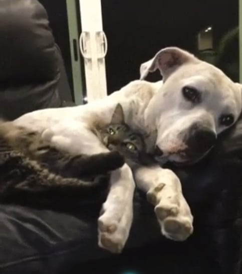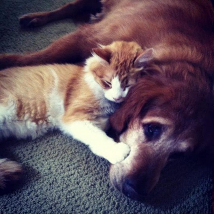 We love how protective this dog is of his cat friend. These two animals have each other’s backs!