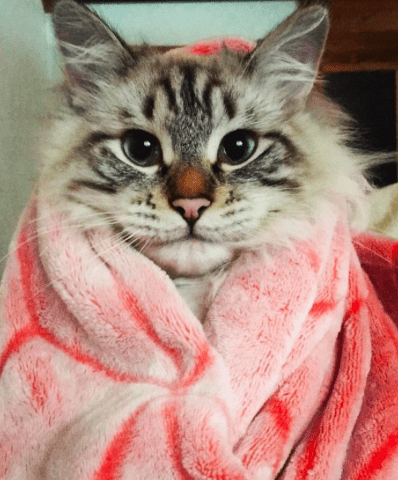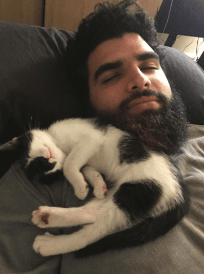 This man is a real hero. He has been allergic to cats his whole life, but he slowly built up an immunity through injections. Then he rescued this kitty, Legolas.