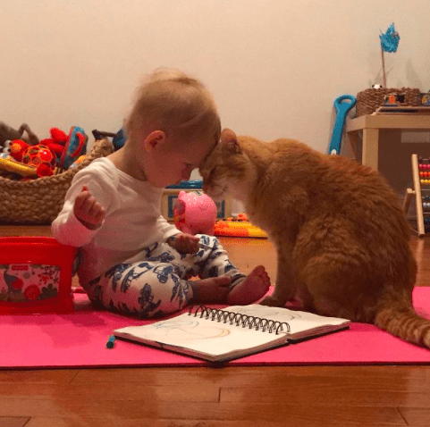 This cat and baby had a moment, and it was all caught on camera. Have you ever seen anything so sweet? They are going to be best friends forever.