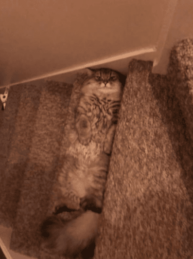 This cat loves to blend into the steps. What a little weirdo! I bet he won’t be so happy if he gets stepped on. Let’s hope that never happens!