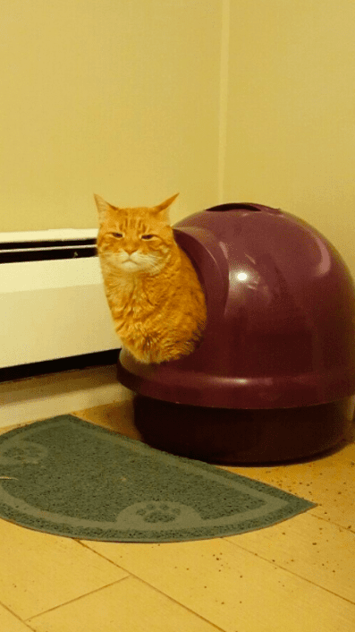 This cat’s creative litter box makes him look like Gary the Snail when he is doing his business. How hilarious is that?!