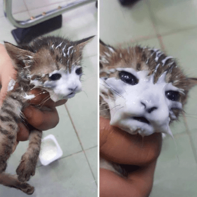 And now you know why. Poor kitty! But you have to admit this put a smile on your face.