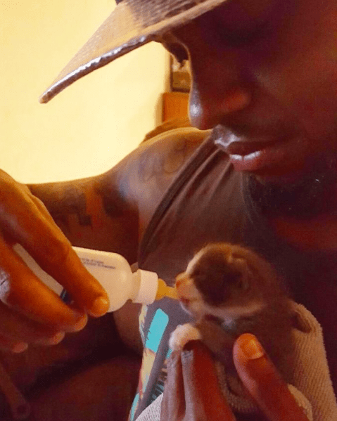 It doesn’t matter how big and tough you are. When you adopt a kitten, you fall in love. Just look at this guy with his tiny bundle of joy!