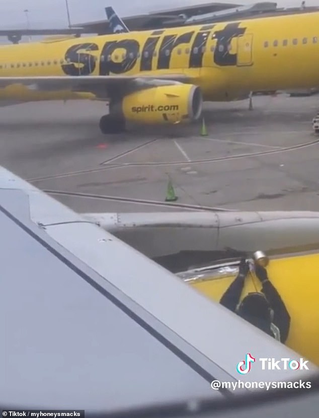 A passenger of Spirit Airlines is going viral after he filmed footage of an employee putting tape across the wing of an airplane, moments before the flight took off.