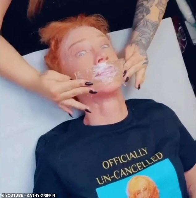 Kathy Griffin showcased her dramatic look featuring a pair of swollen lips after she got them tattooed last month