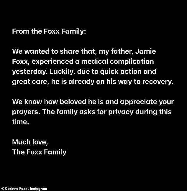 Actor Jamie Foxx has been hospitalized with a medical complication.