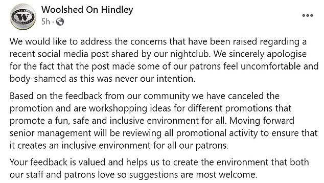 But wait, that drama went on to continue. The Woolshed on Hindley in central Adelaide put out the free drinks special for all those patrons who would come forward at the price of them taking off their tops.