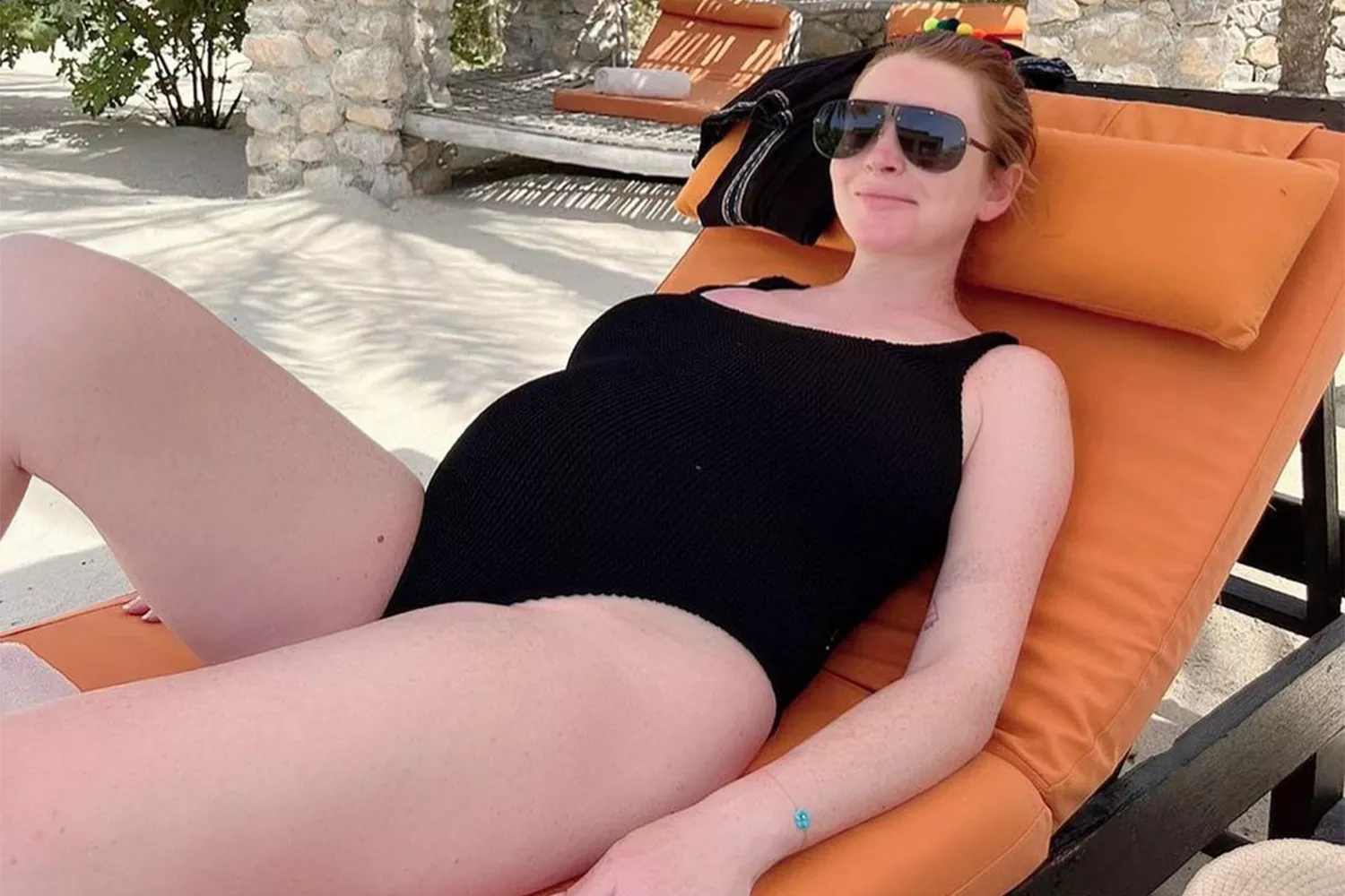 Actress Lindsay Lohan is not afraid to showcase her very pregnant baby bump.