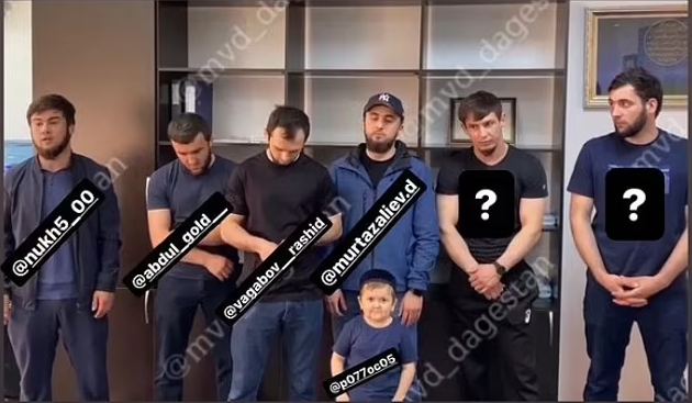 Dagestan’s Ministry of Internal Affairs shared a video of the offenders, including Hasbulla, lined up in a police station.